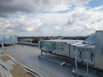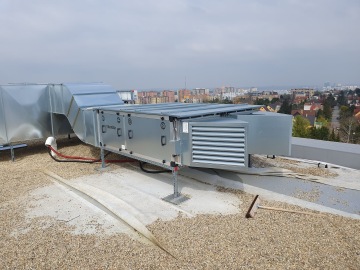 Výsledkem je dodávka čtyř kompaktních větracích jednotek s deskovými protiproudými rekuperačními výměníky, ohřevem a chlazením, které dle přesně definovaného požadavku na průtok vzduchu větrají byty v celém objektu.