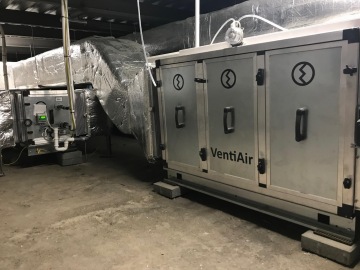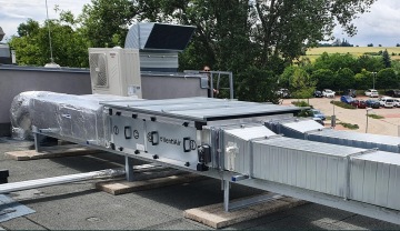 Specifické pro tuto zakázku bylo, že jedna ze sestavných jednotek byla osazena dvěma externími zónovými chladiči a na odtahu třístupňovou filtrací. Standardní typová regulace byla upravena tak, aby uměla obsluhovat všechny tyto dodatečné prvky.