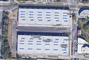 Die Lagereinheiten sind einstöckig mit einer Deckenhöhe von 10 m. Die Verwaltungsgebäude sind zweistöckig.